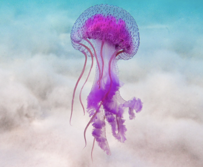 Bien que de nombreuses espèces de méduses soient présentes en Méditerranée, l’espèce invasive la plus répandue dans la région est Pelagia noctiluca, également connue sous le nom de dard mauve. Il s’agit d’une méduse holoplanctonique connue pour sa piqûre douloureuse et que l’on trouve à la fois dans les eaux côtières et plus au large.