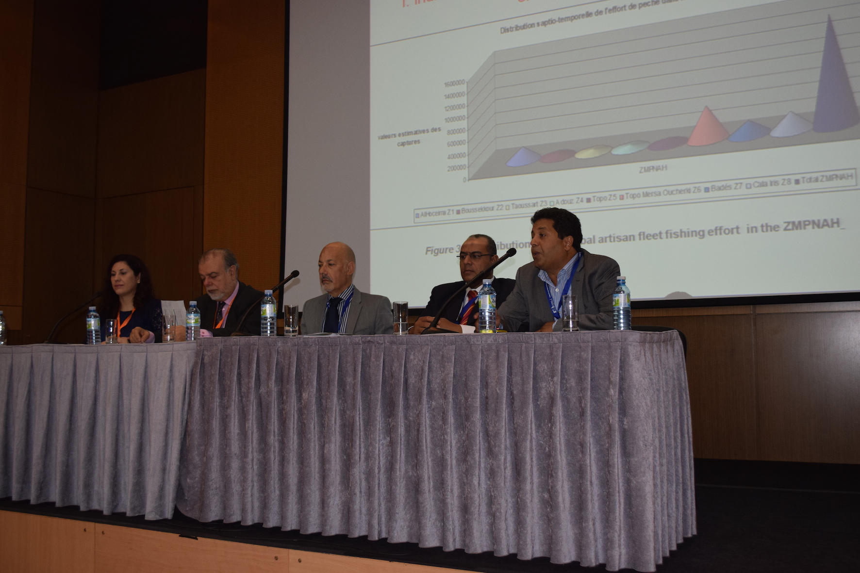 - Nibani HOUSSINE, Association de gestion intégrée des Ressources, a traité le sujet de la Recherche et la planification participative du secteur de la peche artisanale au sein de la Mediterrannée Marocaine , il a pu démontrer l’importance de l’implication effective des pecheurs à travers la sensibilisation , ainsi que les programmes de formations multidisciplinaires de plus de 2000 pecheurs , comment les pecheurs artisans ont pu contribuer dans la lute contre les menaces directes et indirecte en agissant sur les causes des pressions et impacts, et aboutir à une chaine de résultats concernant la restauration des ecosystems marins , des ressources halieutique , tout en Assurant la des ressources halieutiques ainsi que les revenus de cette communauté .